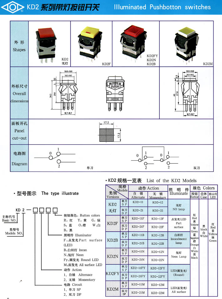 產(chǎn)品型號:KD2系列帶燈按鈕開關(guān)